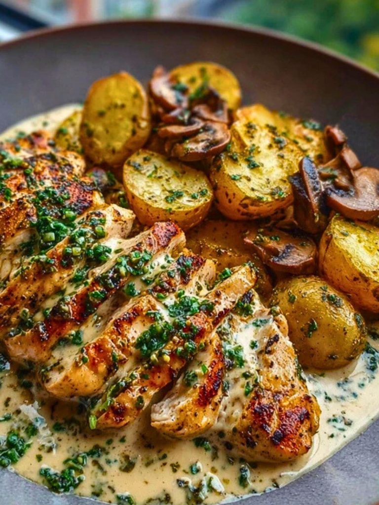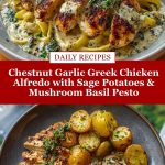 Chestnut Garlic Greek Chicken Alfredo with Sage Potatoes and Mushroom Basil Pesto is not just a meal—it’s a celebration of flavor. It feels fancy without the fuss, and it transforms humble ingredients into something memorable. Whether you serve it for guests or just want to indulge in something a little special midweek, this dish brings comfort and creativity to your table.