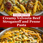 Creamy Velveeta Beef Stroganoff and Penne Pasta is the definition of weeknight comfort. With its rich, cheesy sauce, tender beef, and perfectly cooked pasta, it’s bound to become a family favorite. Whether you make it for a quick dinner or a weekend gathering, it’s a guaranteed crowd-pleaser that you’ll find yourself making again and again.