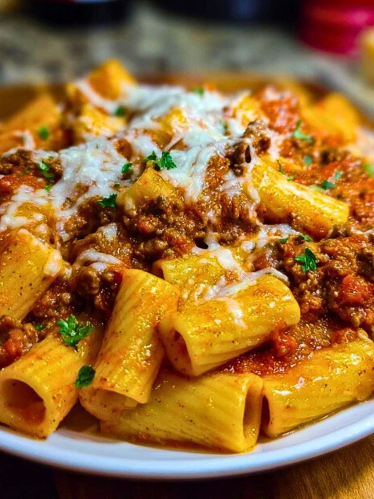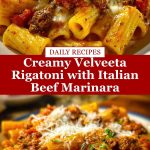 Rich, cheesy, and perfectly hearty, this Creamy Velveeta Rigatoni with Italian Beef Marinara is the kind of dinner that feels like a warm hug at the end of a long day. With tender rigatoni coated in a luscious Velveeta cheese sauce and topped with a savory Italian beef marinara, every bite is pure comfort food bliss.