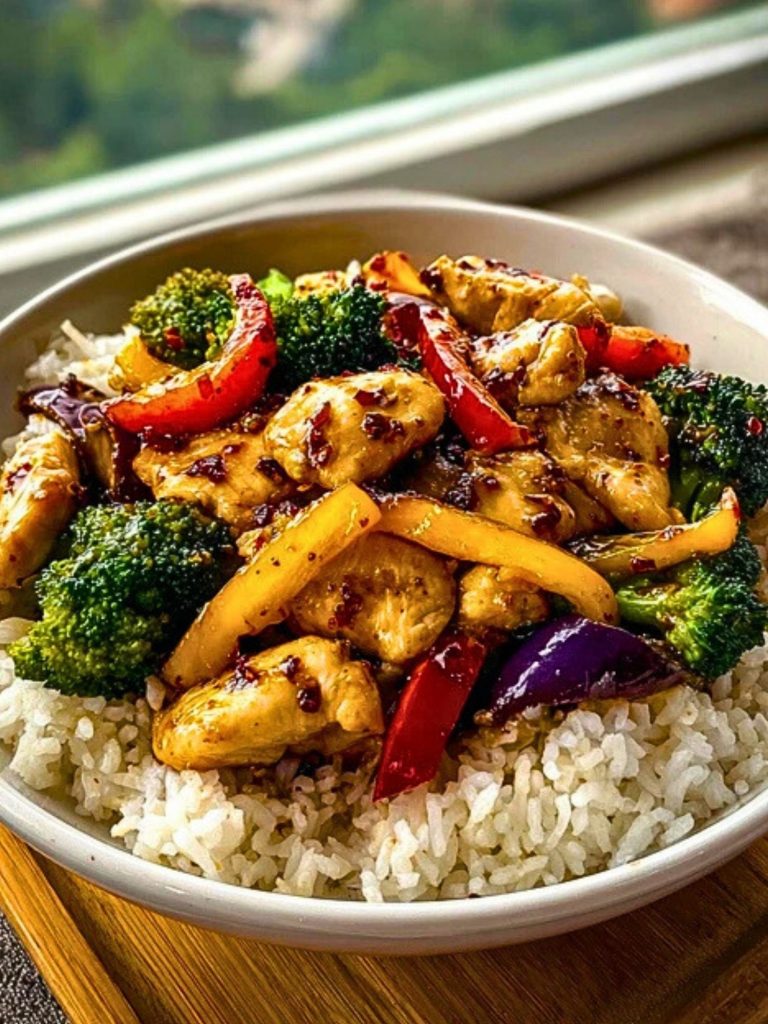 Garlic Chicken Stir-Fry with Rice is your answer to busy weeknights when you need something fast, filling, and full of flavor. With a balance of juicy chicken, crisp veggies, and aromatic garlic, this stir-fry comes together in one skillet in under 30 minutes. The rice underneath soaks up every drop of the savory sauce, making it a comforting and satisfying meal the whole family will ask for again.