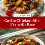 This Garlic Chicken Stir-Fry with Rice is a quick and flavorful weeknight dinner made with tender chicken, fresh veggies, garlic soy glaze, and fluffy rice. Perfect for meal prep or family dinners, it’s a healthy alternative to takeout and ready in 30 minutes. Keywords: garlic chicken stir-fry, chicken and rice dinner, quick stir-fry meal, easy garlic chicken recipe.